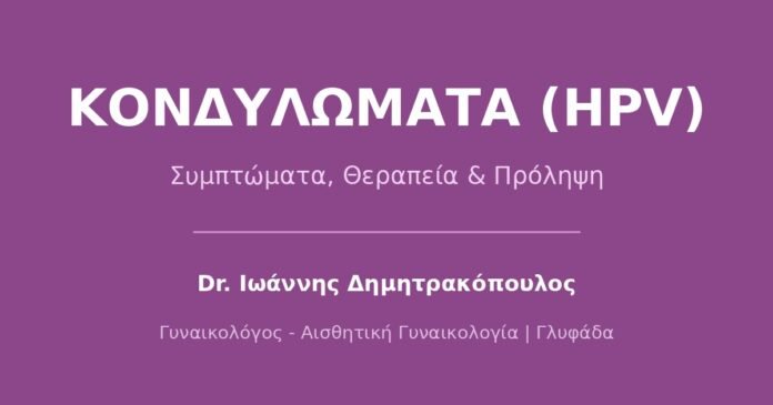 Τα Κονδυλώματα (Genital Warts ή Condylomata Acuminata) είναι μαλακές, σαρκώδεις προεξοχές που εμφανίζονται στην περιοχή των γεννητικών οργάνων και προκαλούνται από τον Ιό των Ανθρώπινων Θηλωμάτων (HPV), ειδικότερα τους τύπους HPV-6 και HPV-11 (90% των περιπτώσεων).