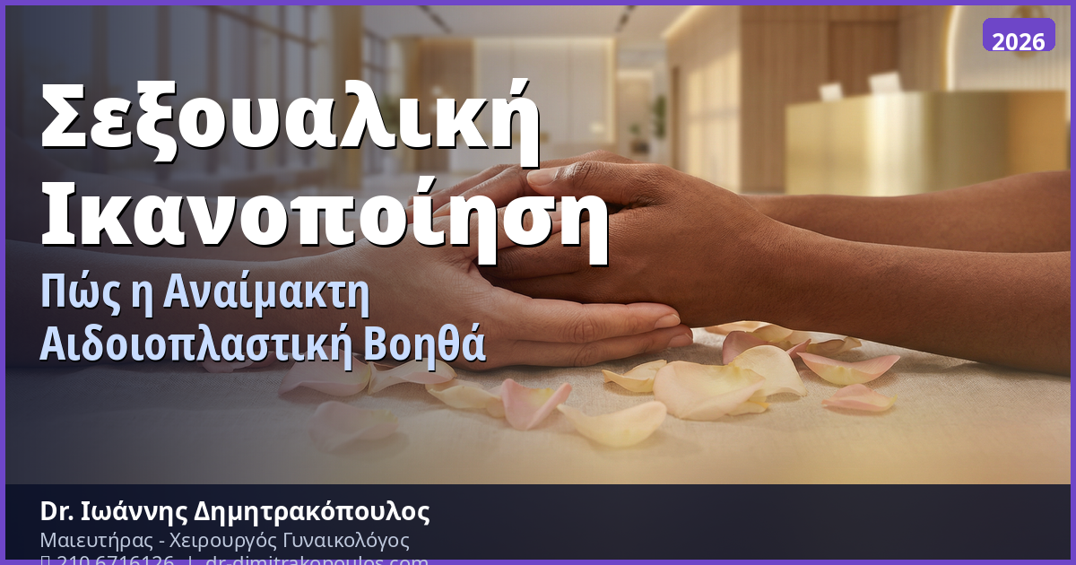 | Ψυχολογικοί | Χαμηλή αυτοεκτίμηση, σωματική δυσμορφία | Άγχος επίδοσης, αποφυγή σεξουαλικής επαφής | ✅ Μέτρια (αιδοιοπλαστική + ψυχολογική υποστήριξη) |