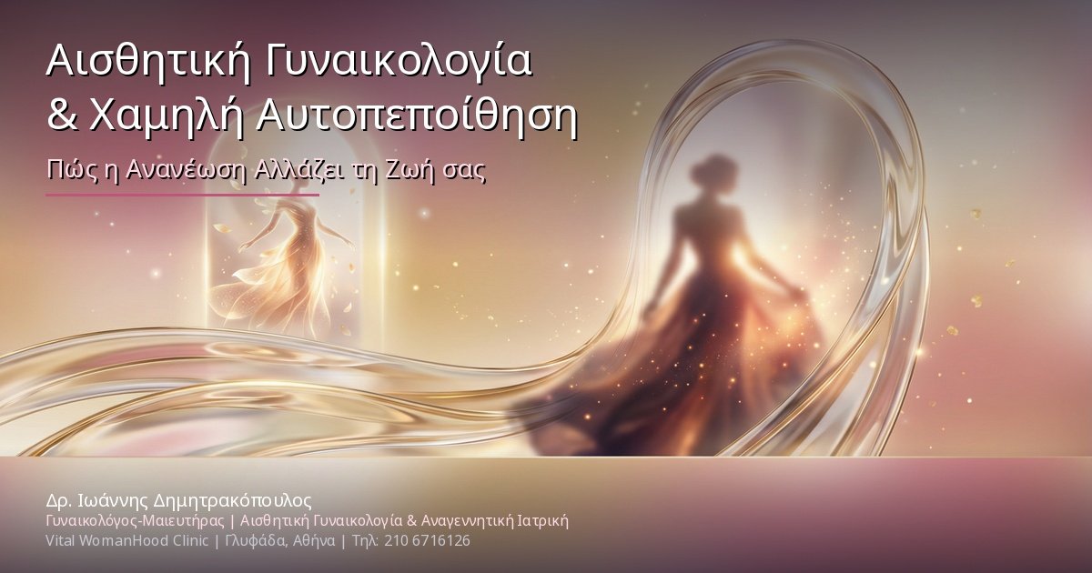 Εάν αισθάνεστε δυσαρέσκεια ή ανασφάλεια σχετικά με την εμφάνιση των γεννητικών σας οργάνων, ο Δρ. Δημητρακόπουλος και η ομάδα της Vital WomanHood Clinic είναι εδώ για να σας βοηθήσουν με διακριτικότητα, εξειδίκευση και σεβασμό.