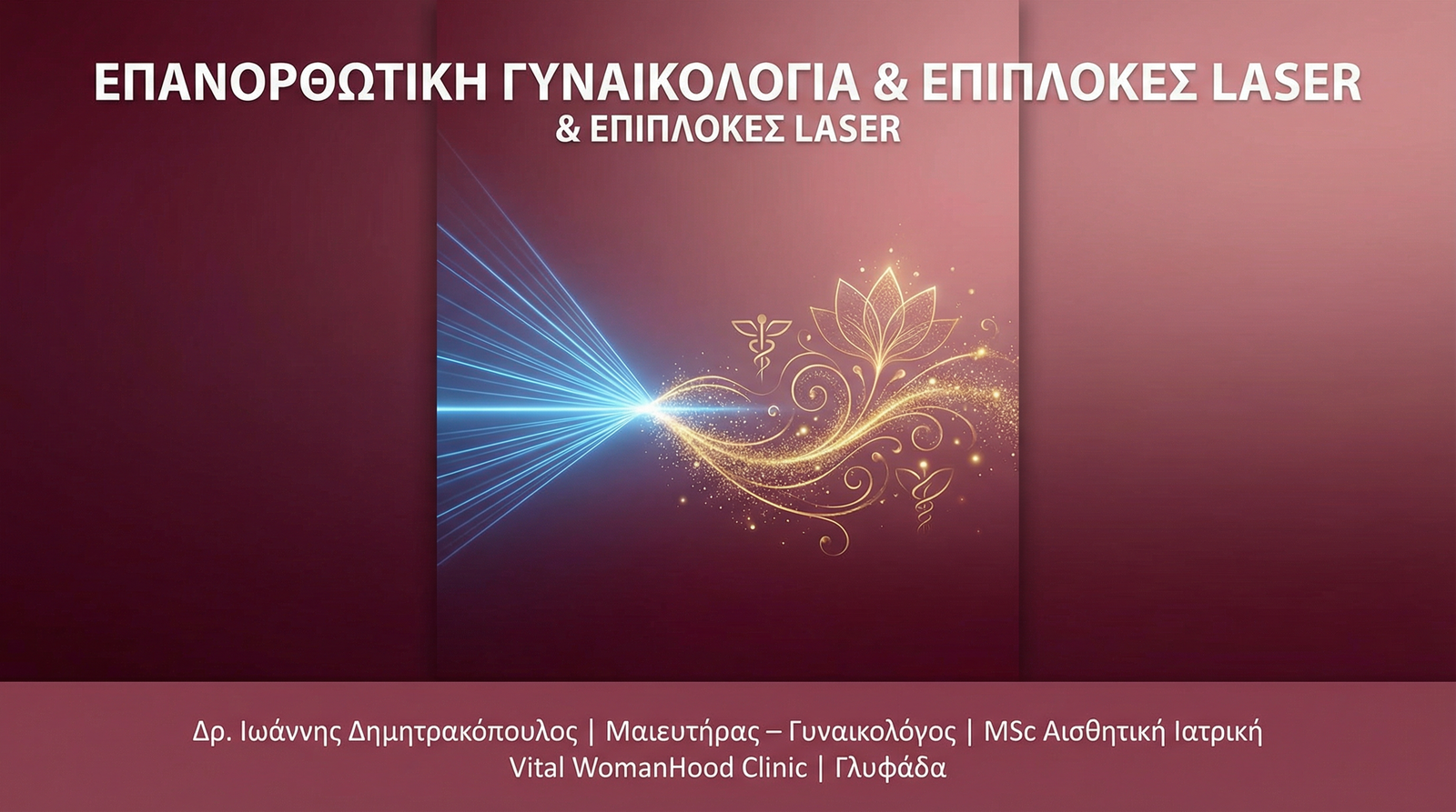 Ο Δρ. Ιωάννης Δημητρακόπουλος στη Vital WomanHood Clinic στη Γλυφάδα προσφέρει εξειδικευμένη επανορθωτική γυναικολογία — μια ολιστική προσέγγιση για την αποκατάσταση βλαβών που έχουν προκληθεί από ακατάλληλη laser θεραπεία, με τη χρήση PRP, RF, εξωσωμάτων, βλαστοκυττάρων και άλλων αναγεννητικών μεθόδων.