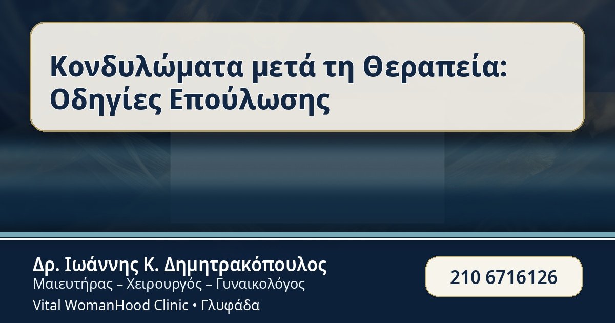 Συνήθως περιλαμβάνει επανέλεγχο της περιοχής μετά τη θεραπεία, αξιολόγηση επούλωσης, συζήτηση για πρόληψη υποτροπών και, όπου χρειάζεται, τεστ Παπ, HPV test ή επιπλέον έλεγχο άλλων περιοχών. Αυτή η οργανωμένη συνέχεια είναι που κάνει τη θεραπεία πιο ολοκληρωμένη και ασφαλή.