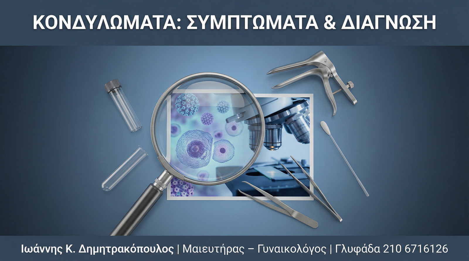 Η διάγνωση των κονδυλωμάτων και της λοίμωξης HPV γενικότερα δεν περιορίζεται στην απλή οπτική εξέταση. Ο Δρ. Δημητρακόπουλος εφαρμόζει ένα ολοκληρωμένο διαγνωστικό πρωτόκολλο που περιλαμβάνει τα παρακάτω βήματα: