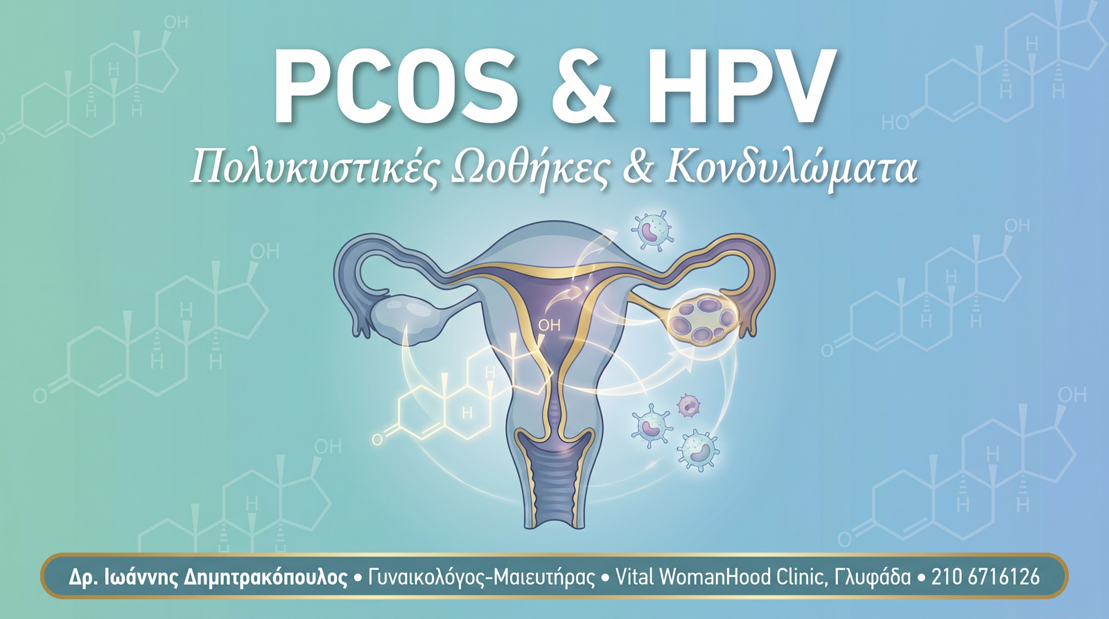 Το PCOS δεν είναι μόνο ζήτημα γονιμότητας ή εμφάνισης — επηρεάζει και την ευπάθεια στις HPV-λοιμώξεις. Με ολιστική προσέγγιση (ετήσια Pap+HPV, μετφορμίνη/inositol, μεσογειακή διατροφή, μείωση βάρους, εμβολιασμός Gardasil 9), οι γυναίκες με PCOS μπορούν να μειώσουν δραστικά τον κίνδυνο κονδυλωμάτων και τραχηλικών αλλοιώσεων.