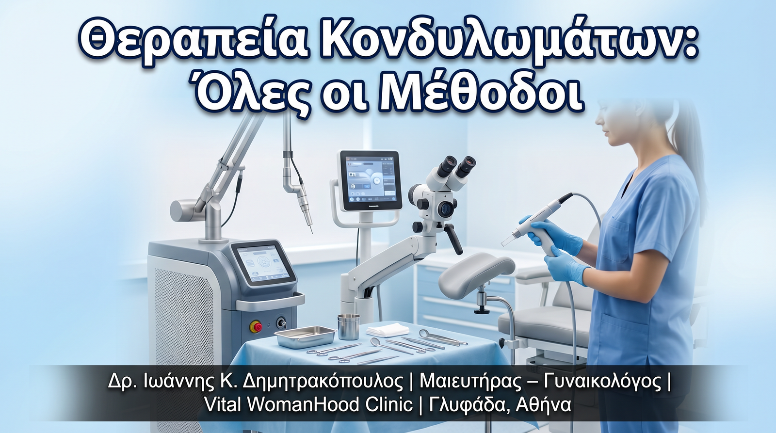 Σύμφωνα με τις διεθνείς κατευθυντήριες οδηγίες, η θεραπευτική προσέγγιση των κονδυλωμάτων δεν είναι «one size fits all». Κάθε ασθενής χρειάζεται εξατομικευμένη αντιμετώπιση, λαμβάνοντας υπόψη πολλούς παράγοντες ταυτόχρονα. Ο Δρ. Ιωάννης Κ. Δημητρακόπουλος, Μαιευτήρας – Χειρουργός – Γυναικολόγος στη Vital WomanHood Clinic στη Γλυφάδα, εφαρμόζει εξατομικευμένα πρωτόκολλα θεραπείας με χρήση τεχνολογίας αιχμής και αποδεδειγμένης αποτελεσματικότητας.